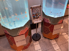 内容:東武川越駅改札前のエキア催事場にて、移動水槽の展示及びドーナッツの販売及び、AP川越の入場チケットの販売・宣伝を実施させていただきました。同時にエキア内のエスカレーター横に水槽2本(淡水魚・海水魚)の展示を実施しております。