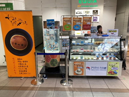 内容:東武川越駅改札前のエキア催事場にて、移動水槽の展示及びドーナッツの販売及び、AP川越の入場チケットの販売・宣伝を実施させていただきました。同時にエキア内のエスカレーター横に水槽2本(淡水魚・海水魚)の展示を実施しております。